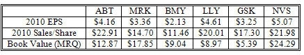 According to IMS Health, the global market for pharmaceuticals is expected to grow at an annual rate of 5 to 8 percent and reach $1.1 trillion by the year 2014. Unfortunately, outside of some mutual funds, I do not have any exposure to this sector in my personal account. In addition to scope for capital appreciation (based on sector growth), many of the big pharma firms also offer an attractive dividend. In the next few articles, I will attempt to determine the valuation and investment potential for the pharma companies currently present in my watch list and hopefully add the most attractive companies to my portfolio.