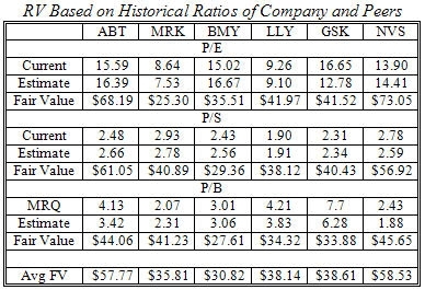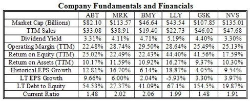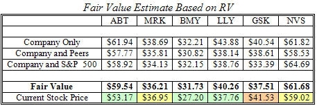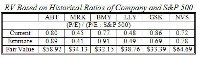 This article presents the relative analysis results conducted for 6 major drug companies namely Abbott Laboratories (ABT), Merck & Co. (MRK), Bristol Myers Squibb (BMY), Eli Lilly & Co. (LLY), GlaxoSmithKline (GSK), and Novartis (NVS).